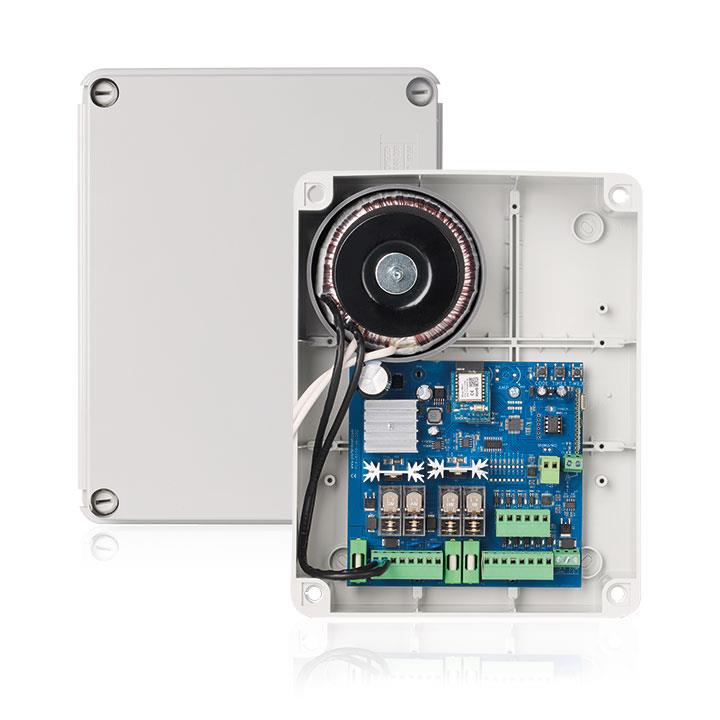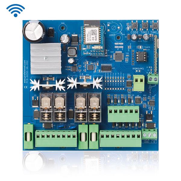 6150 control board is the ideal connectivity solution for double motors 24V that makes access smarter and easier. The user has the possibility to make all the settings of the automation via his mobile phone and also to manage his gate from wherever he is, using the WiFi network, 2.4GHz and 5GHz.