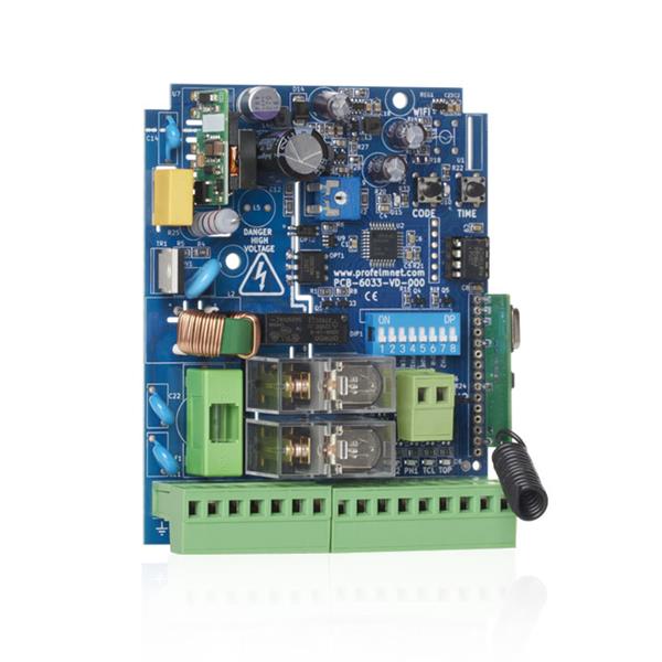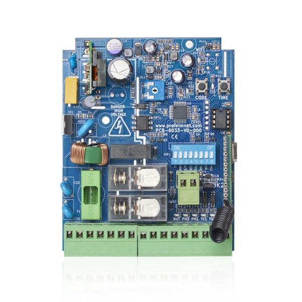 Centrale di comando 1 motore 230V 1200W, per cancelli scorrevoli, basculanti e barriere. Programmazione con DIP. Con ricevitore radio 433,92MHz multicodifica (Codice fisso - Rolling - Rolling keeloq, Rolling PN)